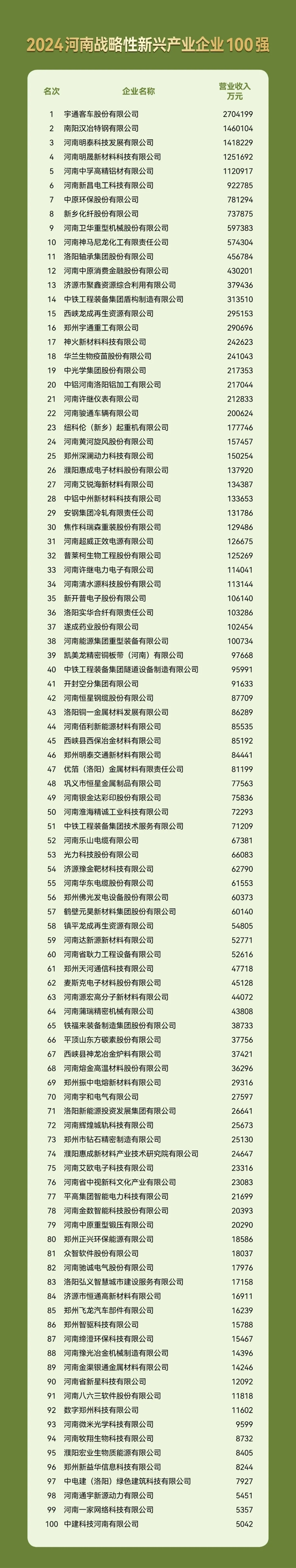 11月1日,由河南省(shěng)企業聯合會(huì)、河南省企業家協會(huì)主辦的2024河南企業100強高峰會在平頂山市召開,大會發布了“2024河南(nán)企業(yè)100強”、“河南製造業企業100強(qiáng)”等係列榜(bǎng)單(dān)。