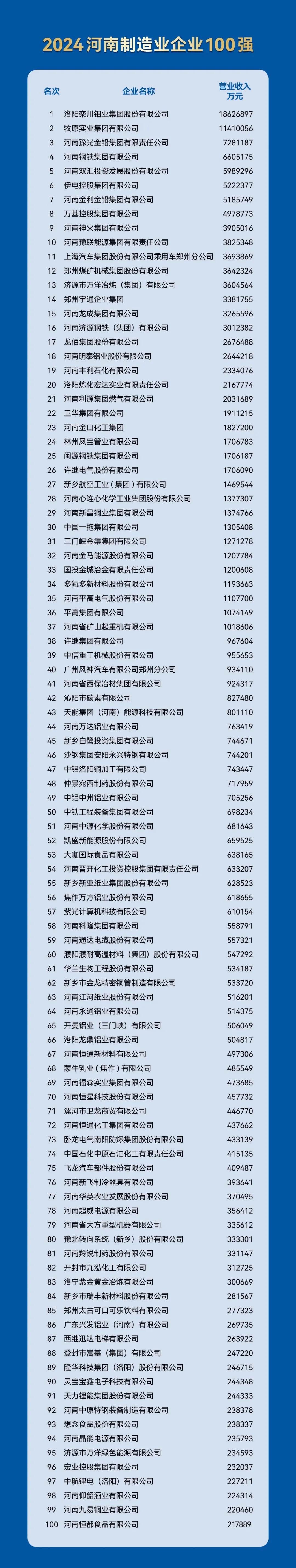 2024河南企業百(bǎi)強揭曉(xiǎo),明泰鋁業及2家子公司上榜(bǎng)!