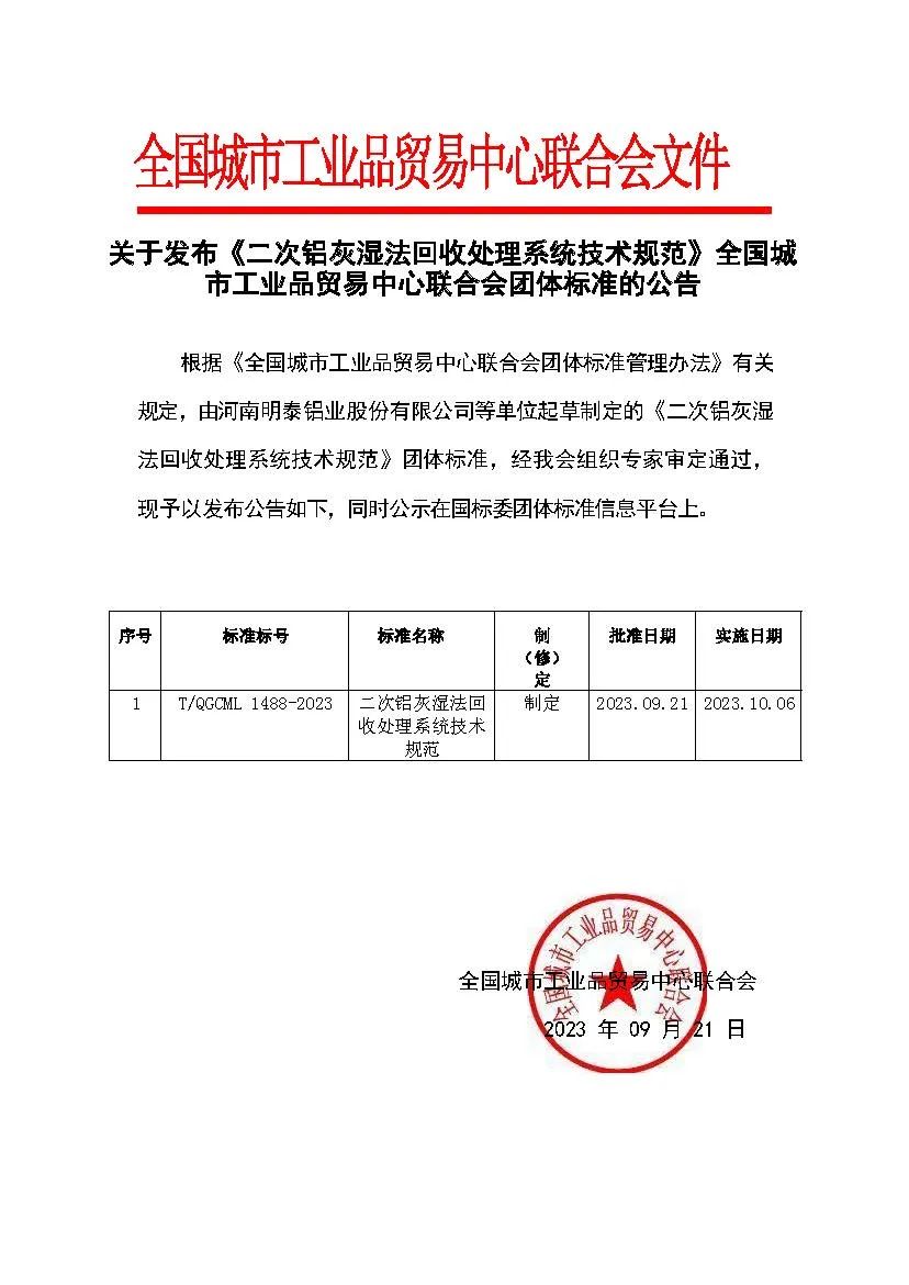 近日,由河南明泰鋁業股份有限(xiàn)公司(sī)牽頭編製的(de)《二次鋁灰濕法(fǎ)回收處理係統(tǒng)技術規範》、《食品容器用再生鋁合金箔》2項團(tuán)體標準順利通過專家評定,獲得批準發布。這是(shì)公(gōng)司以技術難點突破為手段,破解行業共性問題、推進鋁(lǚ)加工行業質(zhì)量提升建設所結(jié)出的最新碩果。